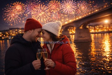 С борта теплохода вы увидите красивый праздничный фейерверк.