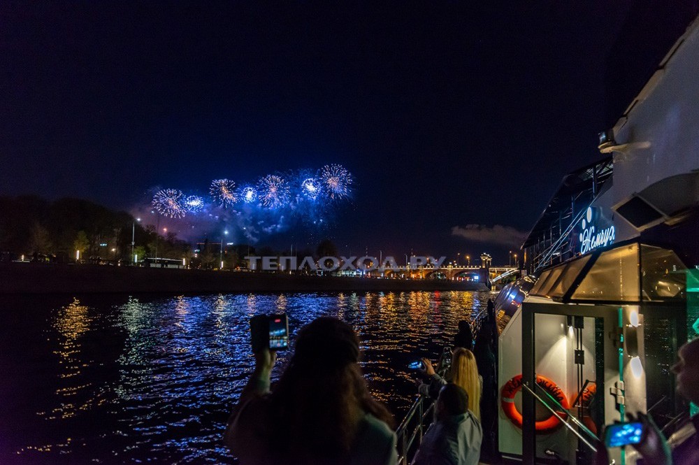 С борта теплохода, вы увидите красивый праздничный фейерверк.