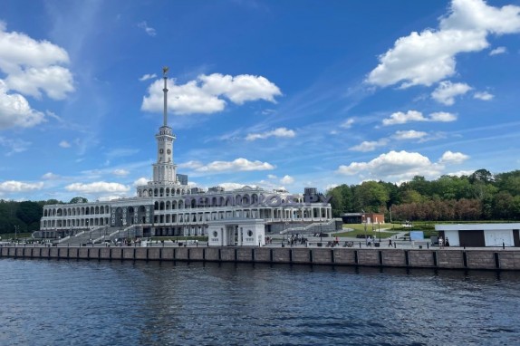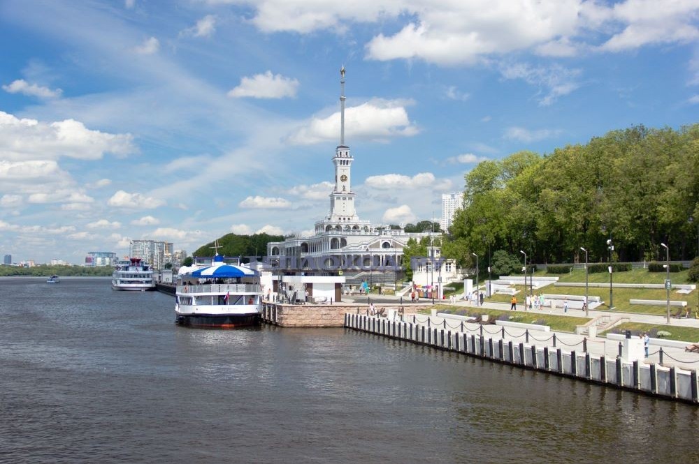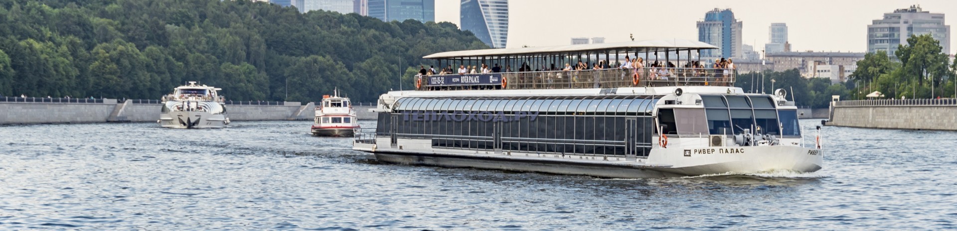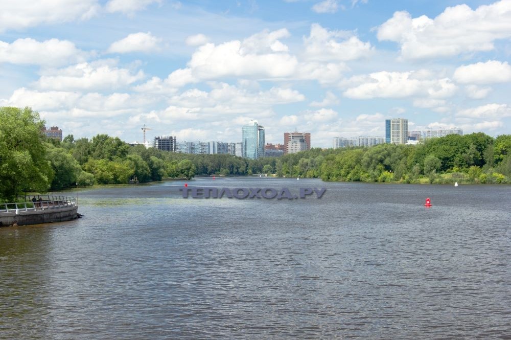 Причал Национальный центр "Россия" (Сити-Экспоцентр) Центр международной торговли Дом Правительства России Мэрия Москвы Гостиница "Украина" Киевская площадь Новодевичий монастырь СК "Лужники" Церковь Св. троицы на Воробьевых горах МГУ им. М.В. Ломоносова Нескучный сад Президиум РАН Церковь Николая чудотворца в Хамовниках ЦПКиО им. А.М. Горького - Крымский мост Памятник Петру Великому Храм Христа Спасителя Театр Эстрады Дом на Набережной Кремль (разворот) Причал Национальный центр "Россия" (Сити-Экспоцентр).